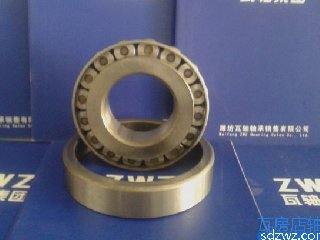 圓錐滾子軸承的內(nèi)、外圈具有錐形滾道,滾道之間裝有錐形滾子。若將錐形面延伸,最終會聚于軸承軸線上一點。圓錐滾子軸承主要用于承受以徑向載荷為主的徑向,軸向聯(lián)合載荷。軸承的軸向承載能力由接觸角決定,越大,軸向承載能力越大.圓錐滾子軸承為分離型軸承,帶滾子和保持架的內(nèi)圈構(gòu)成內(nèi)組件,能與外圈分開安裝。 該類軸承主要用途:汽車前輪、后輪、變速器、差速器、小齒輪軸,機床主軸,建筑機械,大型農(nóng)業(yè)機械,鐵路車輛齒輪減速裝置,軋鋼機輥頸小減速裝置。